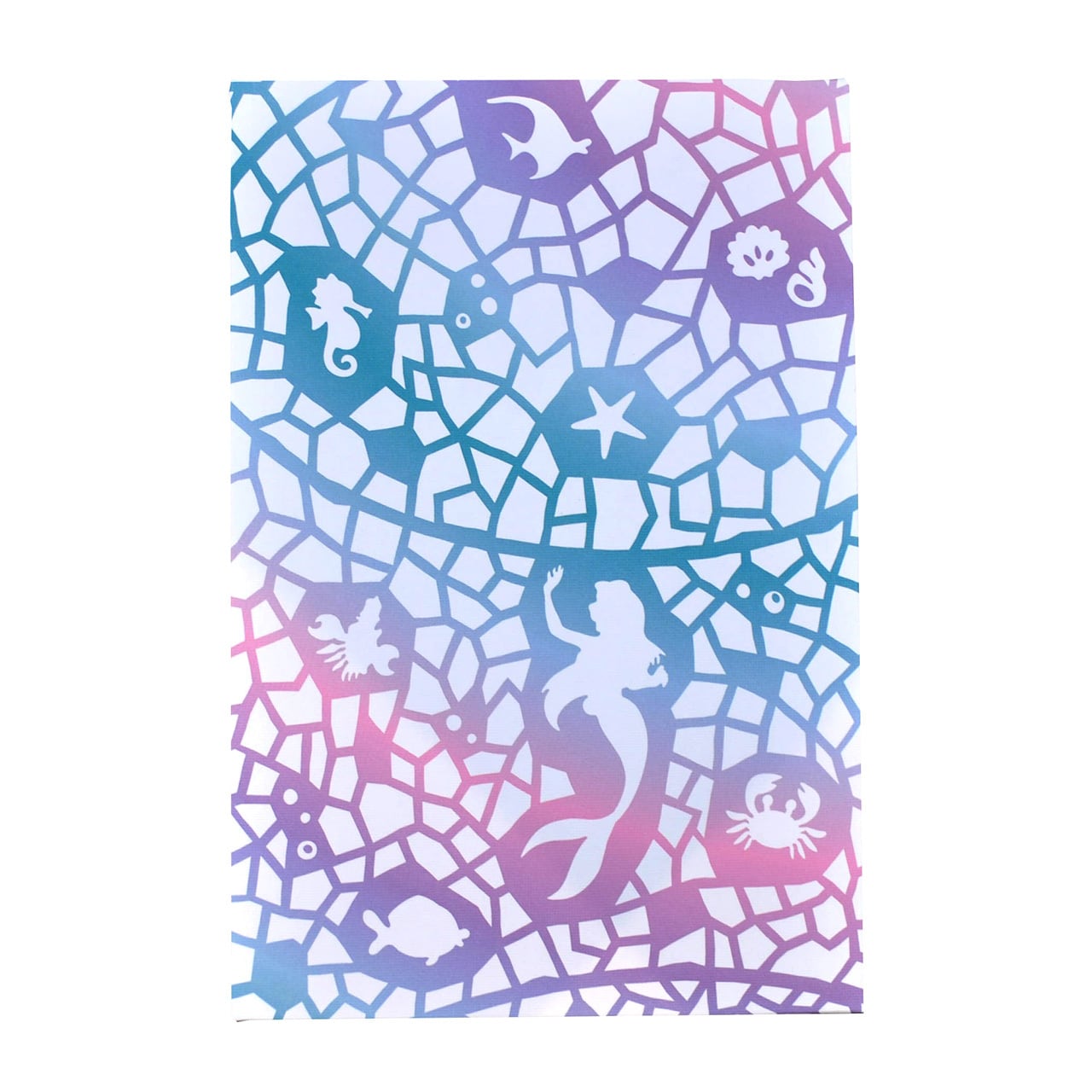 リトルマーメイドのステンドグラスのようなデザインです。淡いグラデーションがとてもきれいです。サイン帳・スクラップ帳・アルバム等に使用できます。中は白色の和紙を使用し、じゃばら型になっています。2枚重ねになっているので、スタンプを押したり絵の具や墨を使用して書いても裏のページにインクなどが染み出しにくい仕様です。